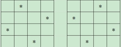 根据以上要求,问N个棋子放置到NN矩阵方格中有多少种放置方案 例如:44的矩阵方格,4个棋子,有2种放置方案